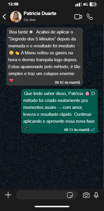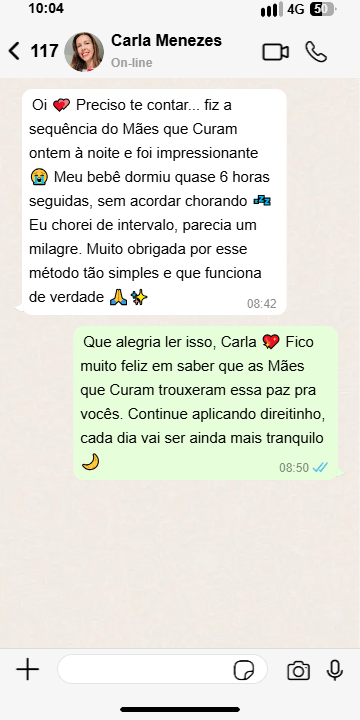 Descubra o Cuidado Terapêutico Materno – o único método validado que devolve noites tranquilas e a paz de ver seu bebê sorrindo de novo, com técnicas simples que qualquer mãe pode aplicar.